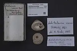 - ^ a b Bieler, R. (2011). Adelphotectonica reevei (Hanley, 1862). Accessed through: World Register of Marine Species at http://www.marinespecies.org/aphia.php?p=taxdetails&id=585801 on 2012-08-04