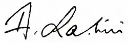 Lahiri was an elected Fellow of the Institution of Engineers, Institute of Fuels (London) and the Indian National Science Academy (INSA), and served as a member of the INSA council from 1968 to 1970.[1] In 1960, the Government of India awarded him the Padma Shri, the country's fourth-highest civilian honour.[10] Nine years later, in 1969, he was included in the Republic Day Honours list again, this time for India's third-highest civilian honour, the Padma Bhushan.[3] Central Fuel Research Institute, the institute he helped found, have since renamed their conferencing facility as Adinath Lahiri Hall, in his honour.[11]