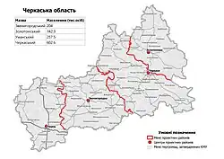 - Cherkasy (Черкаський район), the center is in the city of Cherkasy;