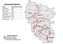 - ^ "Численность населения по состоянию на 1 октября 2015 года по Луганской Народной Республ ике" (PDF) (in Russian). Luhansk People's Republic. Archived from the original (PDF) on 2016-02-04. Retrieved 21 December 2015.