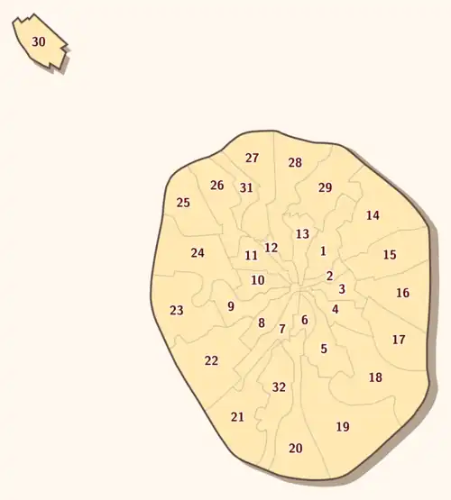 Administratively, the city is divided into 12 administrative okrugs, which in turn are subdivided into 146 administrative units, which include 125 administrative districts and 21 administrative settlements. Municipally, each of the 146 administrative units have municipal status as 125 municipal okrugs, 19 municipal settlements, and 2 urban okrugs.[1] The municipalities of Shcherbinka and Troitsk are styled "urban okrugs" due to their former municipal status within the territory in Moscow Oblast which became New Moscow.