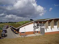 The distribution centre features the UK's largest living roof known as the Sky Garden which is made up of a variety of sedum species. Not only does this help to insulate the building, but the water stored in the sedum plants is also harvested and used to flush the staff toilets and clean company vehicles.[6] This, combined with the solar panels and the environmental construction have meant the energy bills have been cut by half.[7]