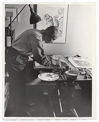![]() Dehn working on a painting for submission to Art Week, 1940 | |