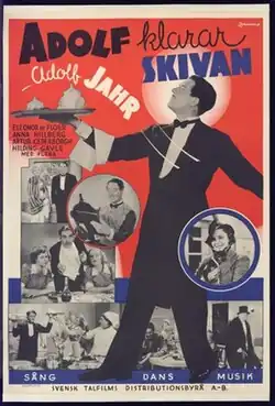 Adolf Saves the Day (Swedish: Adolf klarar skivan) is a 1938 Swedish comedy film directed by and starring Adolf Jahr and also featuring Artur Cederborgh, Eleonor de Floer and Hilding Gavle.[1] The film's sets were designed by the art director Bertil Duroj.