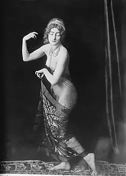 ![]() Adorée Villany performing the "Dance of Phryne", c.1900 | |
