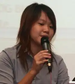 ![]() Adrianna Tan at the blogging seminar Plugging Tomorrow in 2005. | |