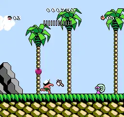 Higgins can crouch, an ability he did not have in the previous NES games, but he loses the ability to backtrack during a stage. Unlike the previous game, the boss does not move to a different stage when the player loses a life.
