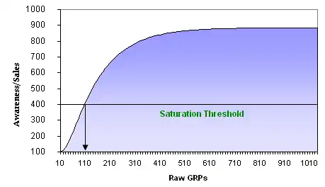 For example, for the ad copy in the above graph, advertising saturation is achieved above 110 GRPs per week.