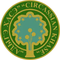 The Karachay-Cherkess branch was formally part of the Confederation of Mountain Peoples of the Caucasus but did not support an independent pan-Caucasian state.[8] It was particularly focused on ecological and cultural protections.[9] A group of the party's supporters unilaterally declared the existence of a Circassian Autonomous Oblast within Stavropol Krai in December 1994 and elected several members of the radical wing of Adyghe Hase to a self-declared executive committee. The event was condemned by the party's branch leadership, causing a conflict to emerge between the moderate and radical wings. On 11 February 1995, the conflict came to an end after the party's membership declared that Psikhomakhov, as well as other leaders of the organisation, were expelled. In response, Psikhomakhov and the other expelled leaders declared that those who had expelled them were acting illegally, and expelled them in return.[8]