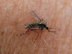 Aedes taeniorhynchus, or the black salt marsh mosquito, is a mosquito in the family Culicidae. It is a carrier for encephalitic viruses including Venezuelan equine encephalitis[3] and can transmit Dirofilaria immitis.[4] It resides in the Americas and is known to bite mammals, reptiles, and birds. Like other mosquitoes, Ae. taeniorhynchus adults survive on a combination diet of blood and sugar, with females generally requiring a blood meal before laying eggs.[5]