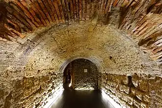 In modern Coimbra there are few remains from ancient Aeminium. The most important is the cryptoporticus, an underground gallery of arched corridors built in the 1st or 2nd century AD to support the forum of the city. Gaius Sevius Lupus was probably the architect.[2] During the Middle Ages the bishop's palace, now turned into the Machado de Castro National Museum, was built over the forum; the cryptoporticus is located under it.[3] The cryptoporticus can be visited through the museum.