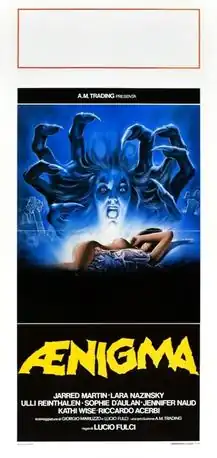 Ænigma is a 1988 Italian horror film directed by Lucio Fulci and was produced by Boro Banjac, Walter Brandi and Ettore Spanuolo. The plot evolves around supernatural and paranormal phenomena in relation to violent deaths occurring in an American college perpetrated by a newcomer who is possessed by a serial killer's ghost.