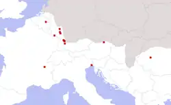 Representations of Erecura are most commonly found in the Danubian area of Southern Germany and Slovenia, but they also occur in Italy, Great Britain, and France. Her inscriptions are concentrated in Stuttgart and along the Rhine. Several monuments in honour of Erecura occur in cemeteries or other funereal contexts.[8] Jona Lendering notes the similarity between her iconography and that of Nehalennia, who was worshipped in Germania Inferior,[4] while Beck sees no significant difference between her attributes and those of the Matres and Matronae.[6] Geographically, the areas in which Erecura and Dis Pater were worshipped appear to be in complementary distribution with those where the cult of Sucellus and Nantosuelta is attested, and Beck suggests that these cults were functionally similar although iconographically distinct.[8]