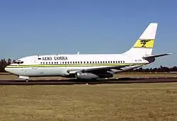 Aero Zambia was an airline based in Zambia. Aero Zambia replaced the bankrupt Zambia Airways and was admitted as a full member of IATA ( International Air Transport Association )on 11 April 1996. The airline employed 300 staff and flew from Lusaka to destinations such as Johannesburg, Ndola, Nairobi, Harare and Dar es Salaam.[1] They offered Business and Economy Classes. Aero Zambia operated two Boeing 737-200s, 9J-AFU and 9J-AFW which was a Combi version.