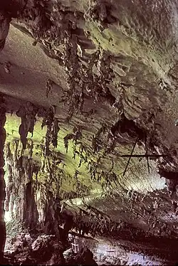 It has been suggested that the giant or waterfall swiftlet, Hydrochous gigas, which cannot echolocate, may be descended from an echolocating ancestor.[3]