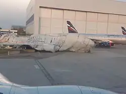![]() Flight 1492 on fire immediately after the landing | |