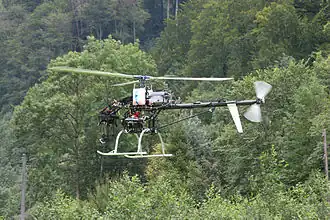 The Aeroscout Scout B1-100 is a small Swiss unmanned helicopter drone developed for roles such as aerial mapping, surveillance and law enforcement. It has also been used for airborne laser scanning.[1] It is equipped with inertial navigation systems and GPS navigation to aid in control, and can either be directly controlled or operate over pre-programmed flight paths.[2]