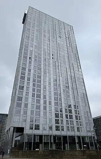 Affinity Living Riverview is a 110 m (360 ft) tall, 35-storey residential skyscraper in Salford, Greater Manchester, England. It is located on the north bank of the River Irwell, near to Manchester's key central business district of Spinningfields. The building was designed by Denton Corker Marshall,[2] the architects behind the nearby Civil Justice Centre.[3] As of March 2025, it is the fourth-tallest building in Salford and the joint 18th-tallest building in Greater Manchester with Union.