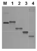 - ^ Ream JA, Lewis LK, Lewis KA (October 2016). "Rapid agarose gel electrophoretic mobility shift assay for quantitating protein: RNA interactions". Analytical Biochemistry. 511: 36–41. doi:10.1016/j.ab.2016.07.027. PMC 5002362. PMID 27495142.