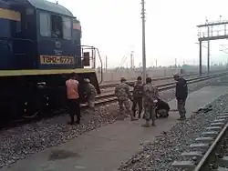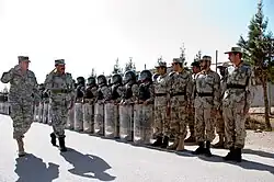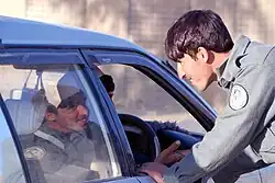 The Afghan Border Force (ABF) was[1] a paramilitary police responsible for counterinsurgency and security of Afghanistan's border area with neighboring countries extending up to 30 miles (48 km) into the interior and formed part of the Afghan National Army.[2] In December 2017, most of the Afghan Border Police (ABP) personnel of the Afghan National Police were transferred to the Afghan National Army to form the Afghan Border Force.[3] The ABP retained 4,000 personnel for customs operations at border crossings and international airports such as checking documents of foreigners entering the country or deporting them.[4][5]