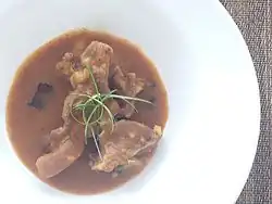 White soup is a soup prepared by people of the Southern region of Nigeria. It has two variations in Nigeria, the Igbo version (Ofe Nsala) and the Ibibio/Efik version (Afia Efere). Afia Efere is similar to the Igbo soup 'Ofe Nsala' except that fewer ingredients are used, and the latter does not contain uyayak (a local seasoning).[3]