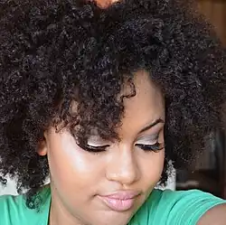African-American hair or Black hair refers to hair types, textures, and styles that are linked to African-American culture, often drawing inspiration from African hair culture. It plays a major role in the identity and politics of Black culture in the United States and across the diaspora.[1] African-American hair often has a kinky hairy texture, appearing tightly coiled and packed.[2] Black hair has a complex history, culture, and cultural impact, including its relationship with racism.[1]