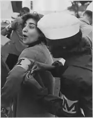 Black women in the 1960s not only organized and led protests for civil rights, but expanded their reach into issues such as poverty, feminism, and other social matters. The "master narrative" depicts a civil rights movement constructed around notable male figures, failing to fully include female contributors.[12] Although women activists lack recognition for their efforts during this time, they acted as primary characters in executing a powerful and successful movement. Studies have suggested gender ideals often channeled women away from formal leadership positions within the American civil rights movement, leaving them to tend to informal leadership positions, when available. Many Black women participating in informal leadership positions, acting as natural "bridge leaders" and, thus, working in the background in communities and rallying support for the movement at a local level, partly explains why standard narratives neglect to acknowledge the imperative roles of women in the civil rights movement. Further, the idea of a "collective identity" among participants and leaders in social movements, such as the civil rights movement, hinders the acknowledgement of African American female involvement. It ignores the intersectionality of race and gender within the civil rights movement, leading to lack of recognition for African American women.[9]