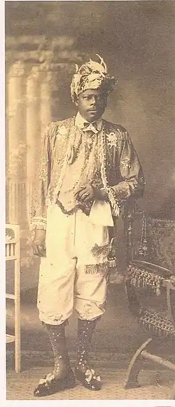 Many blacks were beginning to gain space and respectability in teaching, union organizing, and other areas,[9][30] such as Dario de Bittencourt, lecturer and professor of law at UFRGS and director of the newspaper O Exemplo,[30] Paulino Azurenha, considered by many authors the best literary chronicler of the state in the early 20th century and an important figure in journalism,[32] and José Cândido de Campos Júnior, lawyer, district attorney, intendant of Caxias do Sul, and grand-master of the Masonic lodge Força e Fraternidade.[33][34] An original and influential figure was Custódio Joaquim de Almeida, allegedly an African prince, who settled in Porto Alegre and died in 1935. He was a religious leader and important disseminator of batuque, had contacts in the elite and political class and was an aggregator of the black community. His figure was surrounded by rich folklore and became a symbol of the anti-racist struggle and for the free expression of African cults.[35][36][37]