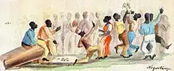 Despite the flourishing of black culture in the state, African-descendant groups interacted with difficulty with white society and tended to remain in "separate worlds".[3][22] There was since the early days of slavery, an effort by officialdom to convert blacks to the dominant culture, a deliberate effort at cultural whitening, especially after the abolition of slavery, and the erasure of black memory.[23] The introduction of large waves of German and Italian settlers in the 19th century was an important part of the attempt to whiten southern society, and the arrival of these settlers caused blacks to lose space, be considered less skilled, less healthy, and lower morality workers.[24][25]
