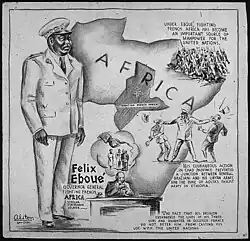 The impact of the European war was substantial in Senegal and other French African colonies. Many of the soldiers had volunteered, but the French also resorted to extensive conscription in its territories. Many of the African soldiers found army life in Europe comparatively more egalitarian than civilian life under the colonial regimes of their homelands. The mixing of African troops with troops and civilians from other races however often made colonial regimes nervous. In 1918 for example, South Africa, forced to earlier deploy armed Africans to cover manpower shortages, removed its black troops from France, because "blacks in the French front were contaminated with foreign notions about race relations and other social grievances."[15] The French employed a number of high-ranking black soldiers, such as Sosthene Mortenol, Commander of the Air Defenses of Paris. The exigencies and shared dangers of war also seemed to have created, in measure, more mutual understanding and freer communication between Africans and Europeans, although this did not translate immediately into a more just order in their homeland territories. Ironically, the last troops to surrender in World War I were the black soldiers fighting for Germany in East Africa.[9]