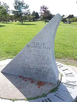 In light of the controversy related to the relocation, the city of Halifax created the Seaview Memorial Park on the site in the 1980s, preserving it from development. The park was most often used as an off-leash dog park. Eddie Carvery has been living on the Africville site since 1970 in protest of the razing despite city officials seizing his trailers several times.[36] Likewise, former Africville residents carried out periodic protests at the park throughout the 1980s and 1990s.[37]