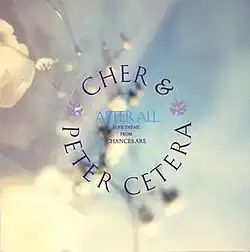 "After All" is a song performed as a duet by American singers Cher and Peter Cetera, released on March 3, 1989 by Geffen Records. It was used as the love theme for the film Chances Are and was nominated for the Academy Award for Best Original Song at the 62nd Academy Awards.[3] The song was also the first North American single release from Cher's nineteenth album Heart of Stone. The song appears on Peter Cetera's 1997 album You're The Inspiration – A Collection[4] and his 2017 album, The Very Best of Peter Cetera.[5]