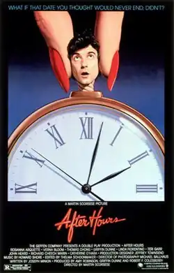 After Hours is a 1985 American neo-noir black comedy film[5] directed by Martin Scorsese, written by Joseph Minion, and produced by Amy Robinson, Griffin Dunne, and Robert F. Colesberry. Dunne stars as Paul Hackett, an office worker who experiences a series of misadventures while attempting to make his way home from Manhattan's SoHo district during the night.