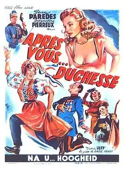 After You Duchess (French: Après vous, duchesse) is a 1954 French comedy film directed by Robert de Nesle and starring Jean Parédès, Jacqueline Pierreux and Jacques Morel.[1] The film's art direction was by Raymond Nègre.