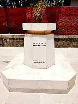 The palace housed a residential co-education School from 1953 - 72. In 1969, Aga Khan Palace was donated to the Indian people by Aga Khan IV as a mark of respect to Gandhi and his philosophy.[1][2] Today the palace houses a memorial on Gandhi where his ashes were kept. The then prime minister Indira Gandhi had visited the place in 1974 where she allotted a sum of ₹200,000 (US$2,400) every year, for its maintenance. The amount rose to ₹1 million (US$12,000) until the 1990s,[6] after which the national monument of India, was neglected for many years due to improper allocation of funds. There was a protest held at the statue of Mahatma Gandhi near Pune railway station in July 1999 to protest against the worsening condition of the monument. The present condition has improved quite a lot.[7]
