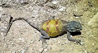 - ^ a b Buiswalelo, Bertha; Eiseb, Seth; Goedhals, Jacqueline; Verdú‐Ricoy, Joaquín; Heideman, Neil (18 September 2019). "Reproduction, predation, sexual dimorphism and diet in Agama anchietae (Reptilia: Agamidae) from Namibia". African Journal of Ecology. 58 (2): 227–235. doi:10.1111/aje.12693. S2CID 203888021. Retrieved 2020-03-05.