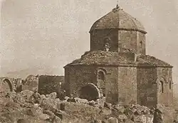 The monastery consisted of two churches: a domed quatrefoil church, and a single-naved church. The domed church was named Sourb Stephanos, and had a tiled conical roof; it was probably built around 650 AD. The single-naved church was likely an earlier construction than the domed church, built in the 5th or 6th century.