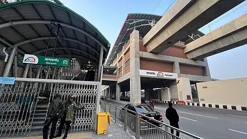 Agargaon (Bengali: আগারগাঁও, romanised: Agargao) is an elevated metro station of the Dhaka Metro's MRT Line 6. It is located in Agargaon, and was opened on 29 December 2022.[2][3]