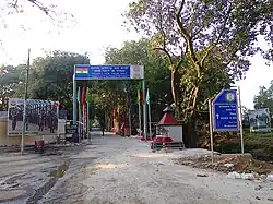 Agartala (/ˌʌɡərtəˈlɑː/, Bengali: [agorot̪ɔla] , Kok Borok: [aguli])[5] is the capital and the largest city of the Indian state of Tripura, situated on the banks of Haora/Saidra River, about 2 kilometres (1.2 mi) east of the border with Bangladesh[6] and about 2,499 km (1,552 mi) from the national capital, New Delhi.[7] According to 2022 AMC data,[8] Agartala is the second most populous city after Guwahati in Northeast India. It is India's third international internet gateway and being developed under the Smart Cities Mission.[9]