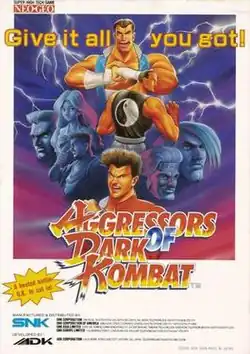 Aggressors of Dark Kombat, known in Japan as Thrilling Intense March[b] or GanGan,[c] is a 1994 fighting arcade game developed by ADK and published by SNK. It was originally released on SNK's Neo Geo MVS arcade platform, then on Neo Geo AES and Neo Geo CD home consoles, and in later decades appeared on retro compilations and digital storefronts. The English game title uses the same initials as the developer. The game's defining feature was that, while it uses a generally 2D format, characters can move towards or away from the screen (somewhat similar to the "Oversway" system from the later SNK title Fatal Fury 3: Road to the Final Victory). While some reviews praised this mechanic, critics generally remarked that it offers no meaningful innovation and that the game is generic and lacking in depth. Though a modest success, Aggressors of Dark Kombat failed to match the popularity of the leading SNK fighters.