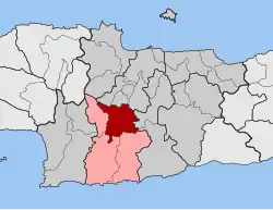 Agia Varvara (Greek: Αγία Βαρβάρα) is a village and a former municipality in the Heraklion regional unit, Crete, Greece. Since the 2011 local government reform it is part of the municipality Gortyn, of which it is a municipal unit.[2] The municipal unit has an area of 99.038 km2 (38.239 sq mi).[3] Population 4,241 (2021). The village lies at an altitude of about 580 meters and has 2,096 inhabitants.