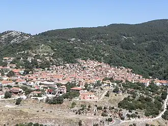 Agiasos (Greek: Αγιάσος) is a small town and a former municipality on the island of Lesbos, North Aegean, Greece. Since the 2019 local government reform, it became a municipality unit that is part of the municipality Mytilene.[2] The municipal unit has an area of 79.924 km2.[3] It is located at the slopes of mount Olympos, at a height of 475 meters (1,558 ft), 26 kilometers (16 mi) from Mytilene.