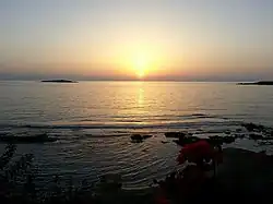 Agios Andreas is a small settlement in the municipality of Pyrgos near the town of Katakolo, in Elis, Greece. It is situated on the site of ancient Pheia, at a bay opposite the islet of Ichthys or Tiganonisi and the island of Zakynthos. Agios Andreas is located 13 kilometers northwest of Pyrgos and approximately 2 km from the port of Katakolo. It owes its name to an old church, now ruined, dedicated to Andrew the Apostle, who is said to have passed from the place on his journeys. The church was built on the ruins of an ancient temple, which was rebuilt in 1930.[2]