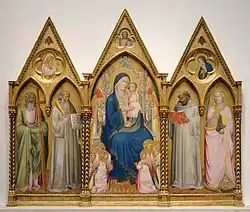 - Madonna and Child with Saints Andrew, Benedict, Bernard, and Catherine of Alexandria with Angels (before 1387), tempera on panel, National Gallery of Art, Andrew W. Mellon Collection, Washington, D.C.. Triptych, possibly commissioned for a Cistercian monastery.[4]