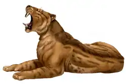 The presence of crocodiles such as Euthecodon at Bled Douarah showcases that what is now Sahara was once covered by extensive river systems, while fossilized wood possibly indicates a tropical woodland.[29] Alongside Agnotherium/Myacyon, the fauna once again included Machairodus, as well as the hyaenas Percrocuta, Protictitherium and Lycyaena, the barbourofelid Vampyrictis, the primitive giraffe Palaeotragus, the anthracothere Libycosaurus and possibly the proboscidean Choerolophodon.[30]