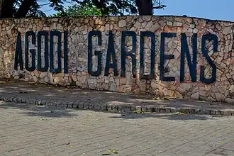 Agodi Gardens, formerly known as Agodi Zoological and Botanical Gardens,[6][7] was created in 1967.[8] The garden was destroyed by the Ogunpa flood disaster in 1980 as most of the animals were swept away by the raging water. The garden was renovated in 2012 by the Oyo State Government, and was reopened in 2014.[9]