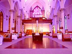 The Agora Grand was created by renovating the former St. Patrick's Church, a Roman Catholic church whose cornerstone was laid on July 24, 1887, by the Right Reverend Bishop Healy[2] and last Mass was held in October 2009.[3] At 220 feet to its taller spire, it is the second-tallest building in Maine,[4] based on the definition of "height to architectural top" by the Council on Tall Buildings and Urban Habitat.[5]