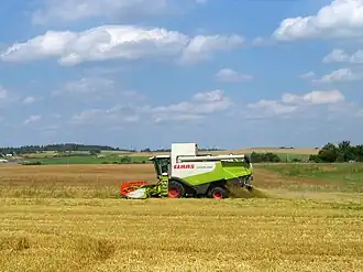 As of 2023, 5,756 thousand hectares were used for crops.[28] In the same year, agriculture generated 7.2% of GDP,[d] employed 6.9% of workers, and accounted for up to a fifth of exports in 2020.[e][12][32] Belarus achieved self-sufficiency in everything except fruits, for which consumption is a third higher than production.[33]