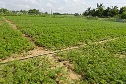 Vegetables in Benin are produced in many different systems and locations, but can be generally put in two distinct categories: 1) a lowland vegetable farming system in the rural areas and 2) an urban and peri-urban production system. In lowland cultivation, traditional vegetables such as tomato, pepper, onion, okra, and leafy vegetables are the most dominant type of vegetables produced. In the urban and peri-urban vegetable production system, vegetables may be both traditional and non-traditional (exotic). With the strong economic growth in Benin, the demand for non-traditional vegetables such as cabbage, carrot, lettuce, and cucumber has increased. Plot sizes are an average of .5 hectares (1.2 acres) where a variety of different vegetables are grown nearby the larger cities.[1]