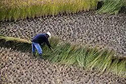 Over 95% of the earning women in the country work in the agricultural sector.[14] Majority of rural Bhutanese population in this Himalayan nation are also employed in the agricultural sector.[15] Agriculture in Bhutan is characterized by its labor-intensive nature with relatively low intensity of farm inputs. Most of the peasants in the country are small and marginal.[2]